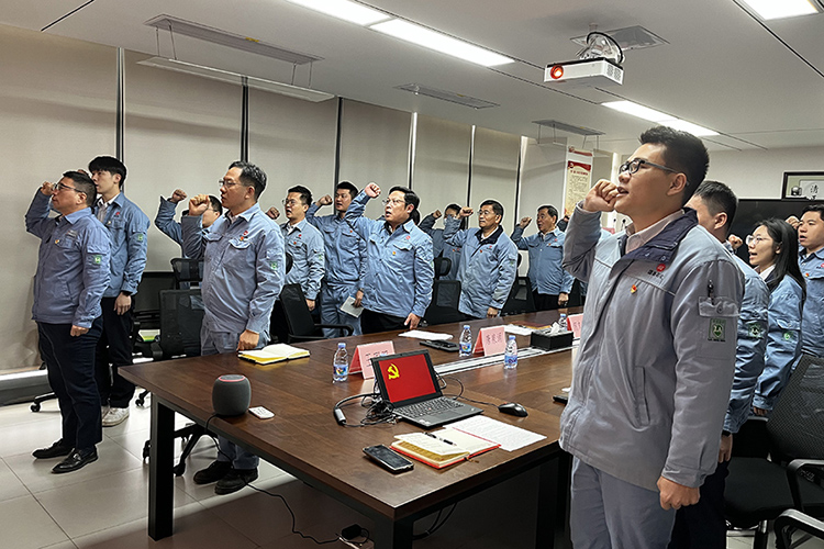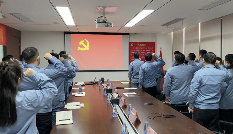 宣誓儀式在莊嚴(yán)的《國(guó)際歌》中拉開序幕。隨后,在公司黨委書記何文忠的帶領(lǐng)下,預(yù)備黨員高舉右拳面向黨旗莊嚴(yán)宣誓,其他黨員也一同重溫了入黨誓詞。