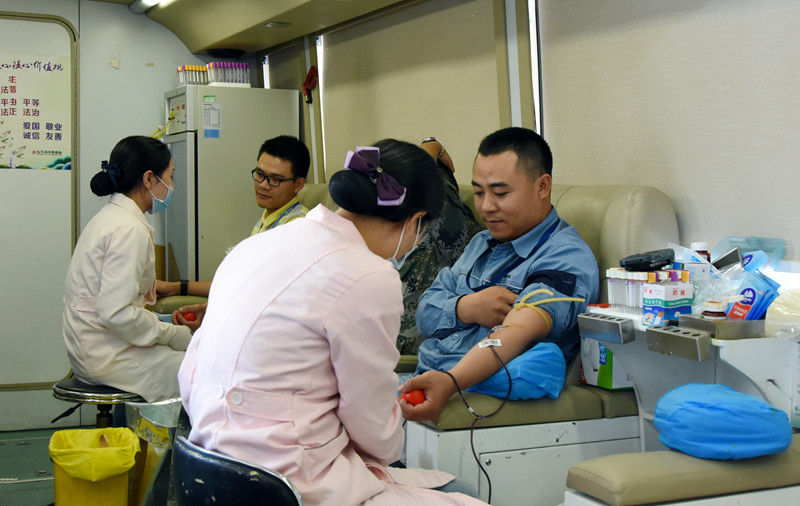 活動現場,參與獻血的巨正源人排起了長長的隊伍。大家在中心血站醫務人員的指引下,認真填寫獻血登記表,測量血壓、抽血化驗,檢驗合格后開始獻血。當中既有在公司工作多年的老同志,也有剛剛加入公司的新員工,還有部分同志已經多次參加無償獻血活動。