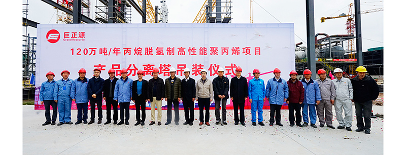 12月12日上午,巨正源公司120萬噸/年丙烷脫氫制高性能聚丙烯項(xiàng)目(以下簡(jiǎn)稱“丙烷脫氫項(xiàng)目”)產(chǎn)品分離塔吊裝儀式在東莞市沙田鎮(zhèn)立沙島舉行。最大直徑12米、高128米,總重量約3050噸的“巨無霸”——產(chǎn)品分離塔整體一次成功吊裝就位,創(chuàng)造了國(guó)內(nèi)乃至亞洲大型設(shè)備吊裝新紀(jì)錄,同時(shí)也標(biāo)志著丙烷脫氫項(xiàng)目第一階段工程建設(shè)全面進(jìn)入沖刺階段。