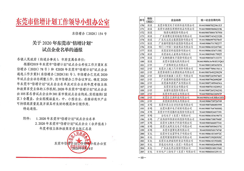 巨正源科技公司入選2020年東莞市“倍增計劃”試點企業