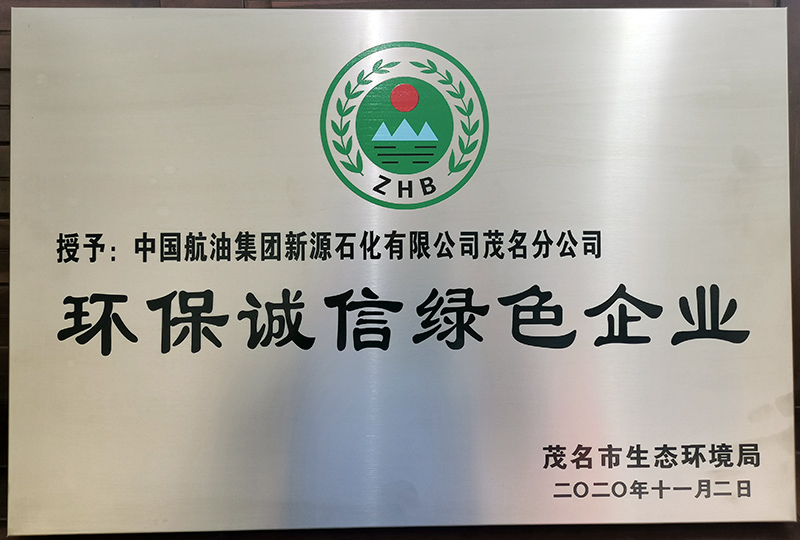 新源石化茂名分公司榮獲“環保誠信綠色企業”稱號