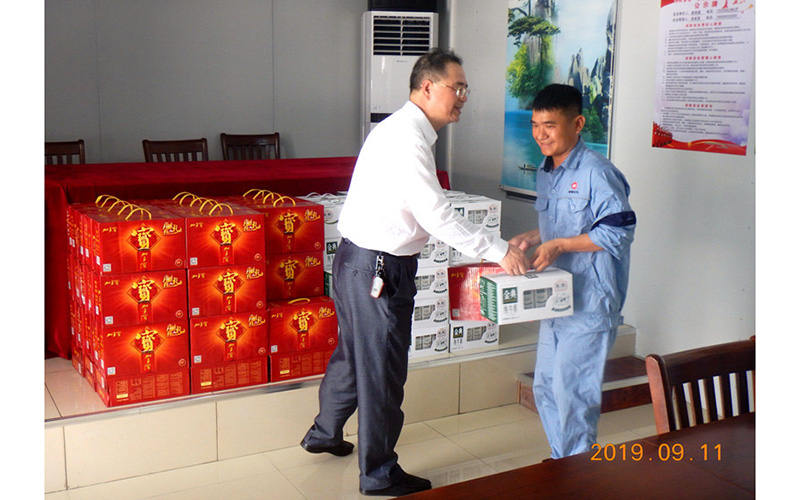 曾一平董事長(zhǎng)親切慰問(wèn)分公司員工,并為員工發(fā)放慰問(wèn)品。